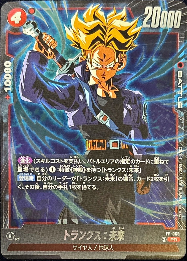 効果 【進化】(スキルコストを支払い、バトルエリアの指定のカードに重ねて登場できる)(1):特徴《神殿》を持つ「トランクス:未来」 | |