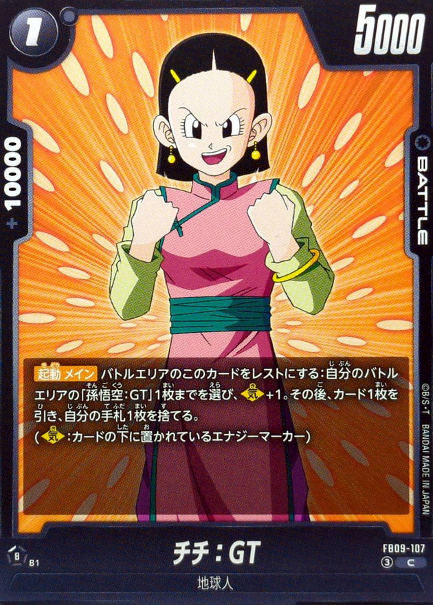 効果 【起動 メイン】バトルエリアのこのカードをレストにする:自分のバトルエリアの「孫悟空:GT」1枚までを選び、【気】+1。その後、カード1枚を引き、自分の手札1枚を捨てる。(【気】:カードの下に置かれているエナジーマーカー) | |