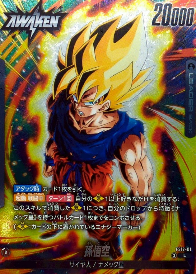 効果 【アタック時】カード1枚を引く。【起動 戦闘中】【ターン1回】自分の【気】1以上好きなだけを消費する:このスキルで消費した【気】1につき、自分のドロップから特徴《ナメック星》を持つバトルカード1枚までをコンボさせる。(【気】:カードの下に置かれているエナジーマーカー) | |